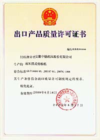 經國家鑄造鍛壓機械質量監督檢驗中心的嚴格檢驗及安徽出入境檢驗檢疫局的現場抽樣檢測,我司“中德”牌機床產品均符合出口質量許可制度規定的要求,于近日拿到了“出口產品質量許可證書”,為中德品牌打入國際市場邁出了堅實的一步。