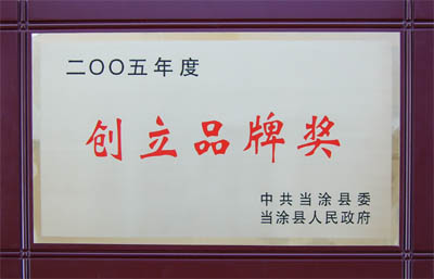 我公司由于2005年獲得了“安徽省名牌產(chǎn)品”和“安徽省著名商標(biāo)”兩項榮譽(yù),被縣委、縣政府評為“2005年度創(chuàng)立品牌獎”,兩項榮譽(yù)分別獲得現(xiàn)金10000元的獎勵!
