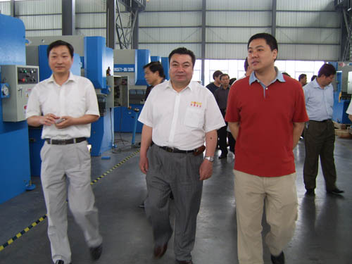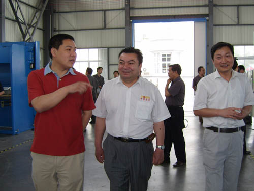 2006年5月26日下午,安徽省機床工具協會代表團在安徽機床工具協會理事長、合肥鍛壓機床有限公司董事長嚴建文帶領下,一行數十人來我公司參觀考察,當涂縣委常委、博望鎮黨委書記張清等領導陪同了代表團一行??疾熘写韴F成員對我公司近年來的快速發展、產品定位等給予了充分的肯定。