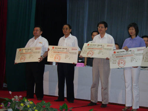 2006年7月26日下午,馬鞍山市2005年獲省著名商標(biāo)企業(yè)表彰大會(huì)在市政府東二樓會(huì)議室舉行,出席本 次會(huì)議的主要領(lǐng)導(dǎo)有省工商局副局長(zhǎng)黃家華、市人大常委會(huì)副主任杜永田、市政府副市長(zhǎng)劉榮華、市政協(xié) 副主席孫文植、市政府副秘書長(zhǎng)王興無(wú)、省工商局商標(biāo)局局長(zhǎng)劉國(guó)建等。