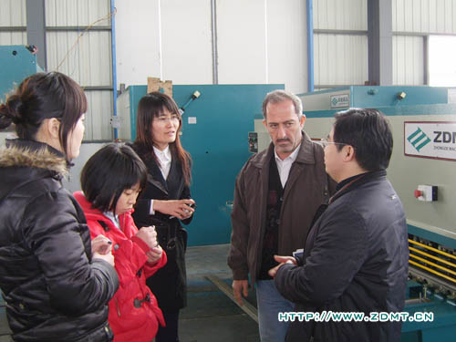 Haiyl A.AI Rawy先生對中國機(jī)械行業(yè)尤其是剪板機(jī)折彎機(jī)非常的熟悉,他表示他們非常重視機(jī)器的質(zhì)量,來中德也是由于中德機(jī)器在海內(nèi)外都享有良好的聲譽(yù)。參觀前,Haiyl A.AI Rawy還特意詢問我們在阿聯(lián)酋有沒有代理,當(dāng)公司領(lǐng)導(dǎo)回答說目前還沒有時,他釋然一笑,表示希望能夠與中德建立良好的合作關(guān)系。在中德的成品車間,Haiyl A.AI Rawy先生聽取了我公司營狀況及近遠(yuǎn)期規(guī)劃的介紹,并就每一款機(jī)床的詳細(xì)情況進(jìn)行了介紹,重點詢問了其性能及售價等。他對我們的數(shù)控折彎機(jī)尤其感興趣,要求當(dāng)場進(jìn)行測試。Haiyl A.AI Rawy特意讓自己的助理拍下了整個操作過程,在我公司工程師的幫助下,Haiyl A.AI Rawy還進(jìn)一步了解了折彎機(jī)數(shù)控系統(tǒng)的編程方面的問題。